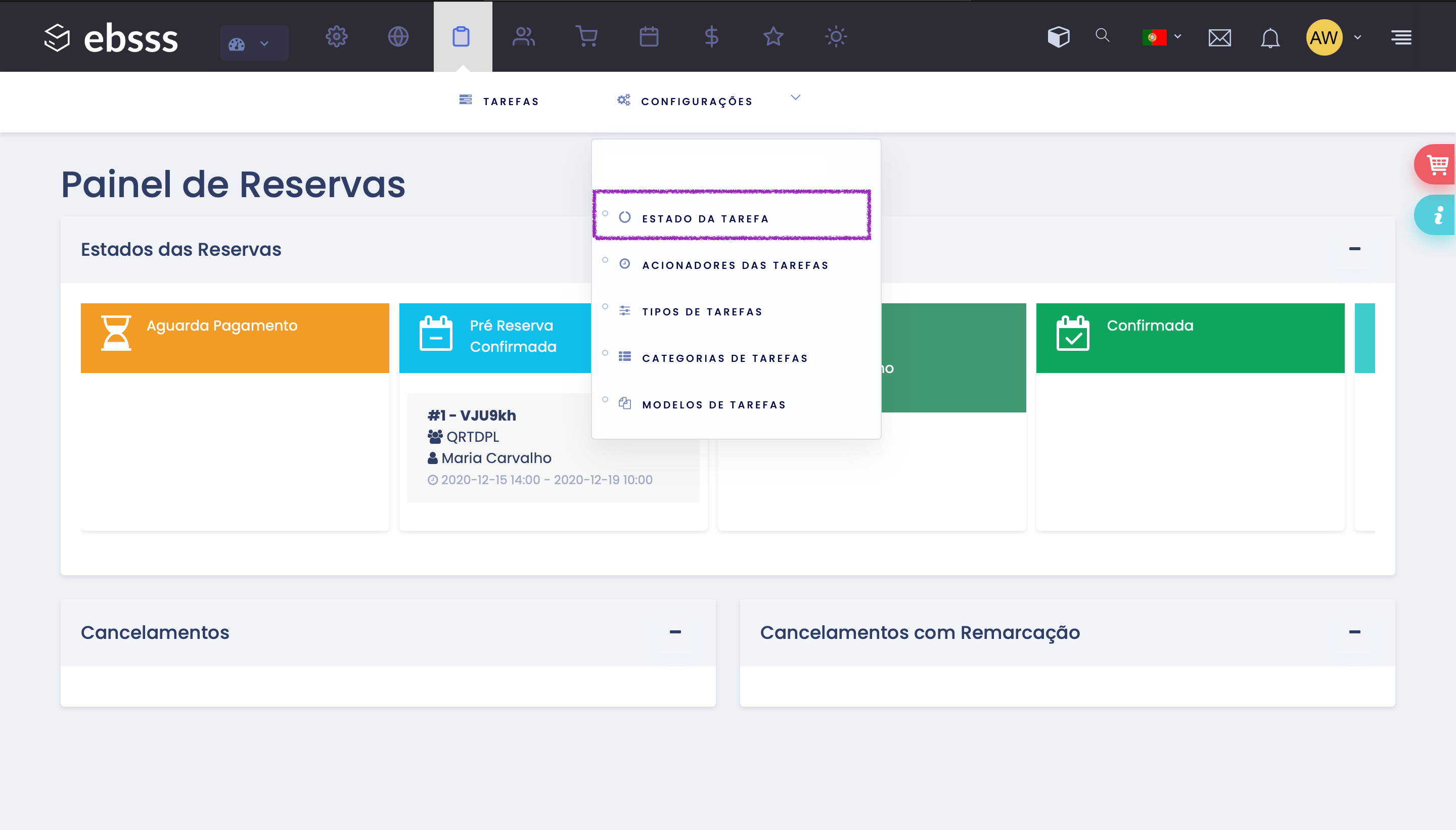 Vamos começar por introduzir os Estados das Tarefas, acedendo a Projetos -> Configurações -> Estados da Tarefa: